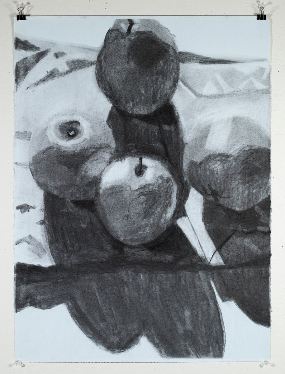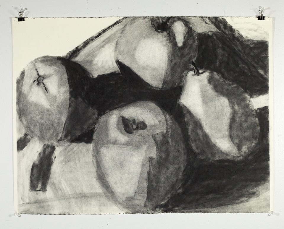 Stack of Fruit, 2014, Charcoal on Grey Paper, 30x22in