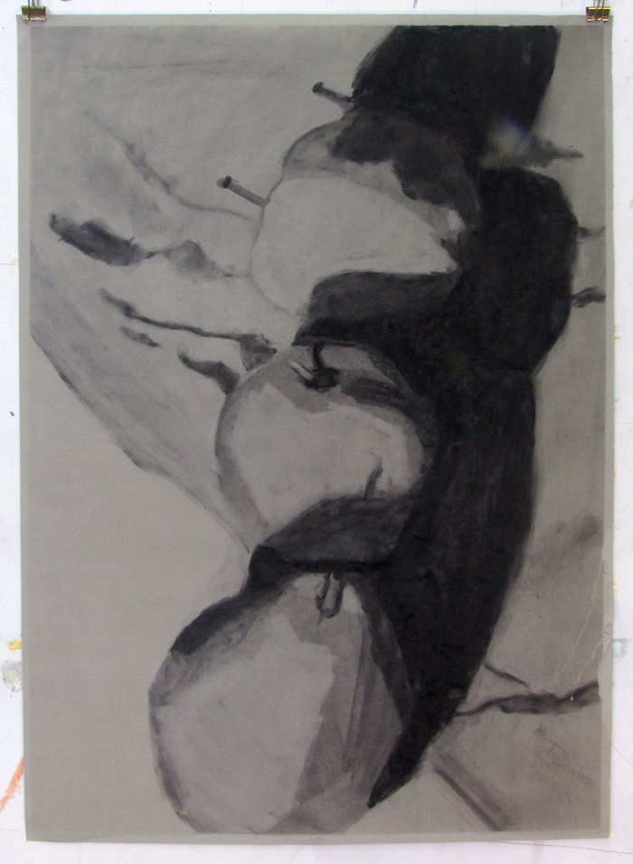 Pear with Apples, 2014, Charcoal on Blue Paper, 30x22in