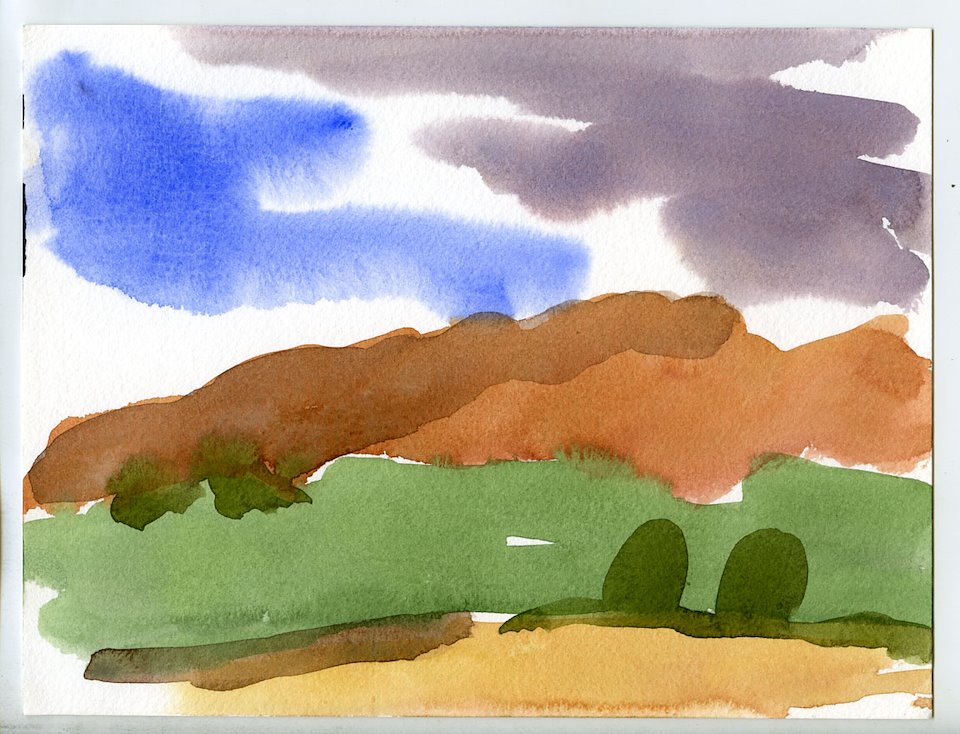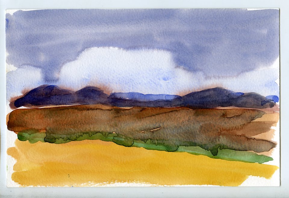 Rain Clouds over Desert II, Watercolor, 5.5x8.5in, 2021